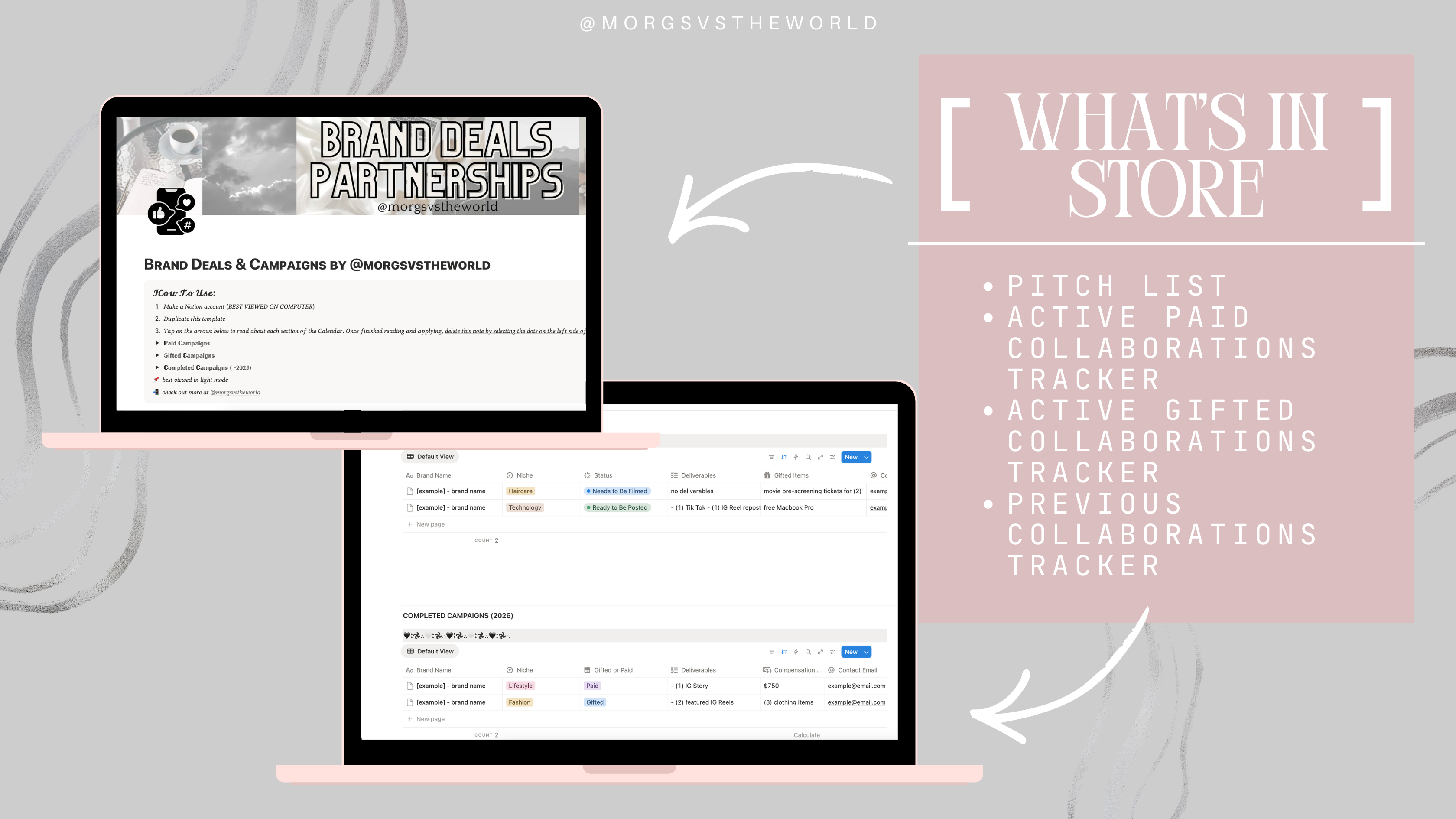 The 2026 Brand Manager is your go to system for staying organized, professional, and intentional with brand partnerships all year long. This clean template helps you track collaborations, manage deliverables, monitor payments, and organize outreach while storing media contacts, brand emails, and partnership notes in a built-in pitch list designed to support consistent, strategic growth!