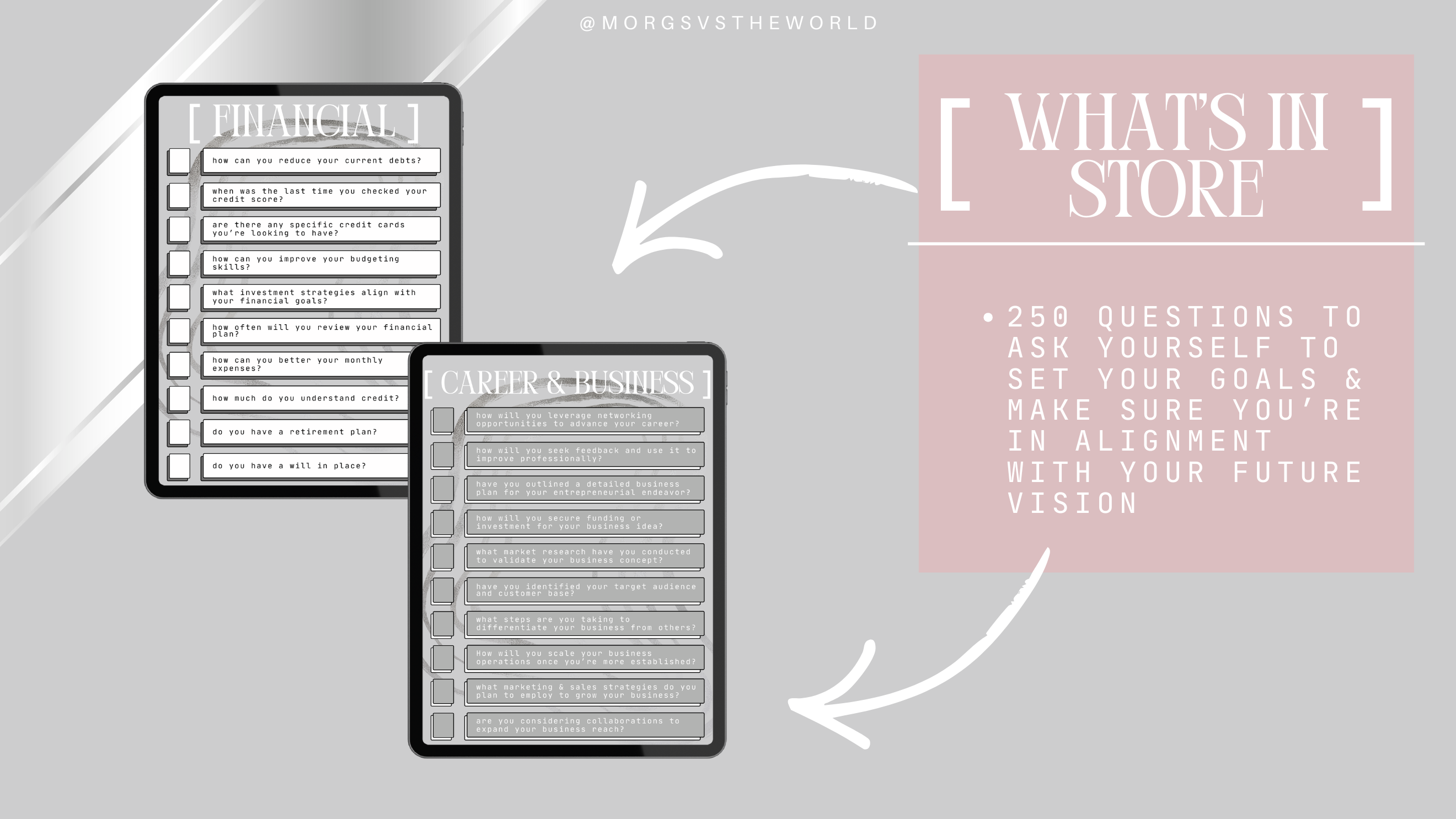 With 250 Goal Setting Questions, this is designed to help you get clear, focused, and aligned on what you truly want. Featuring thoughtfully written questions across personal, fitness, career, business, financial, and relationship categories, this guide helps you reflect with purpose, define meaningful goals, and create a vision that supports intentional growth throughout the year ahead.